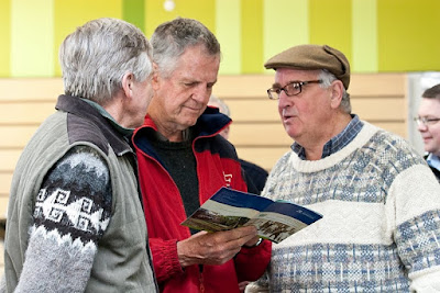 Here's a photo of some dapper chaps consulting a booklet I recently made for a field day event. Once our graphic design work is printed and delivered it is someone else's baby. But it's a joy to see a product in action.